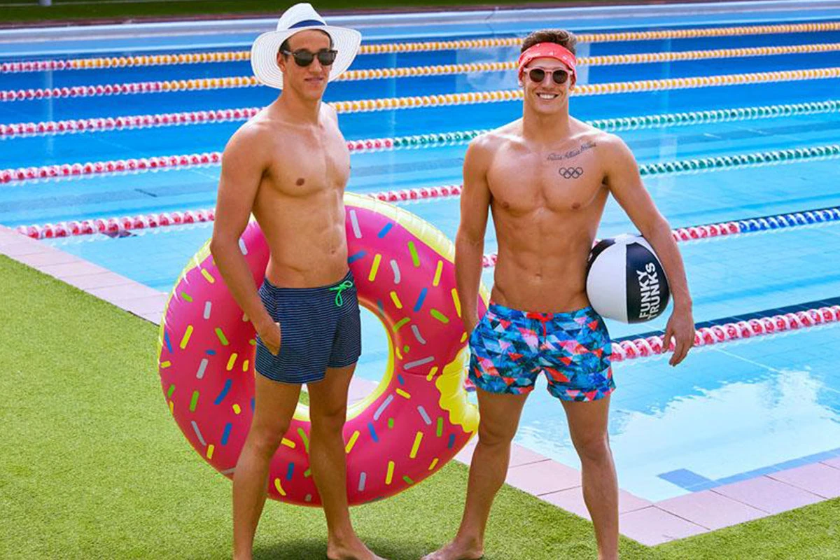 Short and stylish fitted watershort made of quick drying polyester. Features a built in brief for added support, deep side pockets, coin pocket and drawcord to fasten. Now with Funky Trunks branded brass hardware including metal tips, eyelets and rivets. Printed options also have Funky Trunks patch on leg. Available in sizes XS – XXL. 90% Polyester 10% Elastane.